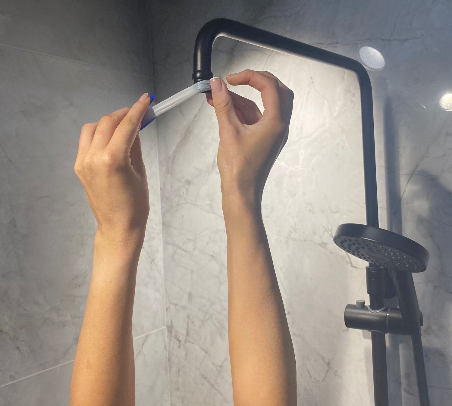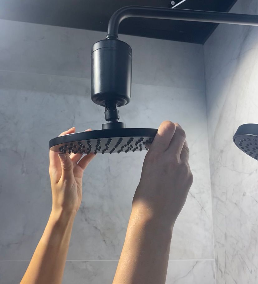 Hold your Shower Purifier under a tap and turn the water on to flush out the extra carbon particles. This may initially turn your water black/grey, but don’t worry, keep flushing for approx. 20 seconds until you see clear running water, turn it over and flush in the opposite direction.
