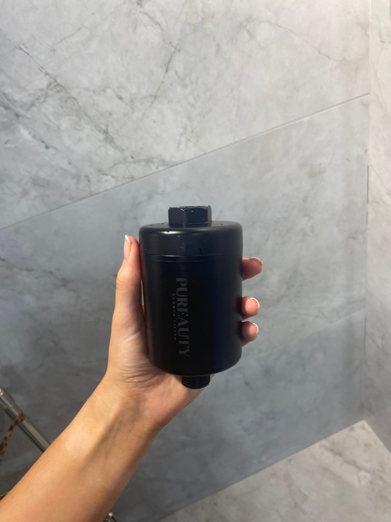 Hold your Pureauty Shower Purifier under a tap and turn the water on to flush out the extra carbon particles. This may turn your water grey for the first few seconds, but don’t worry, keep flushing for approx. 20 seconds, turn it over and flush in the opposite direction.